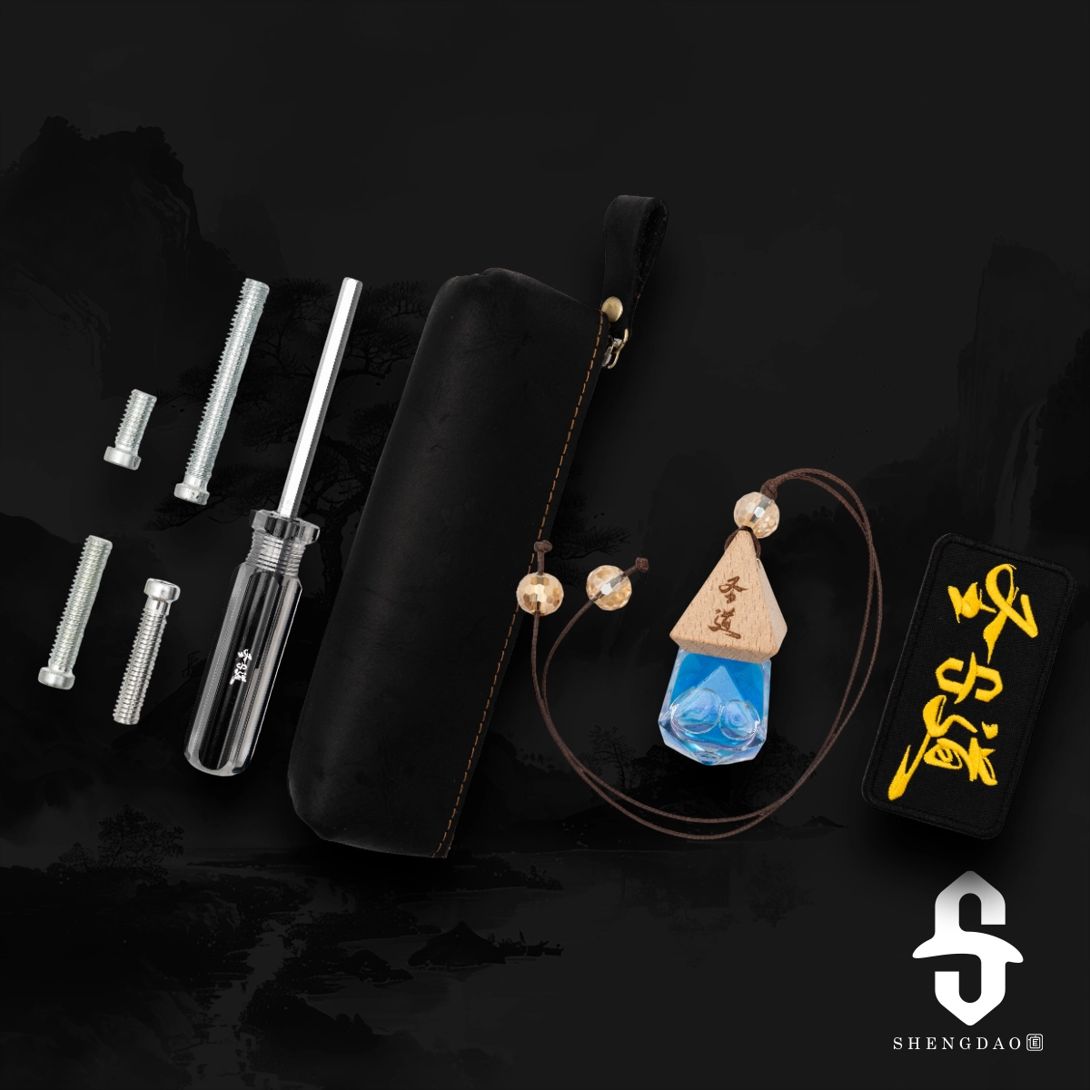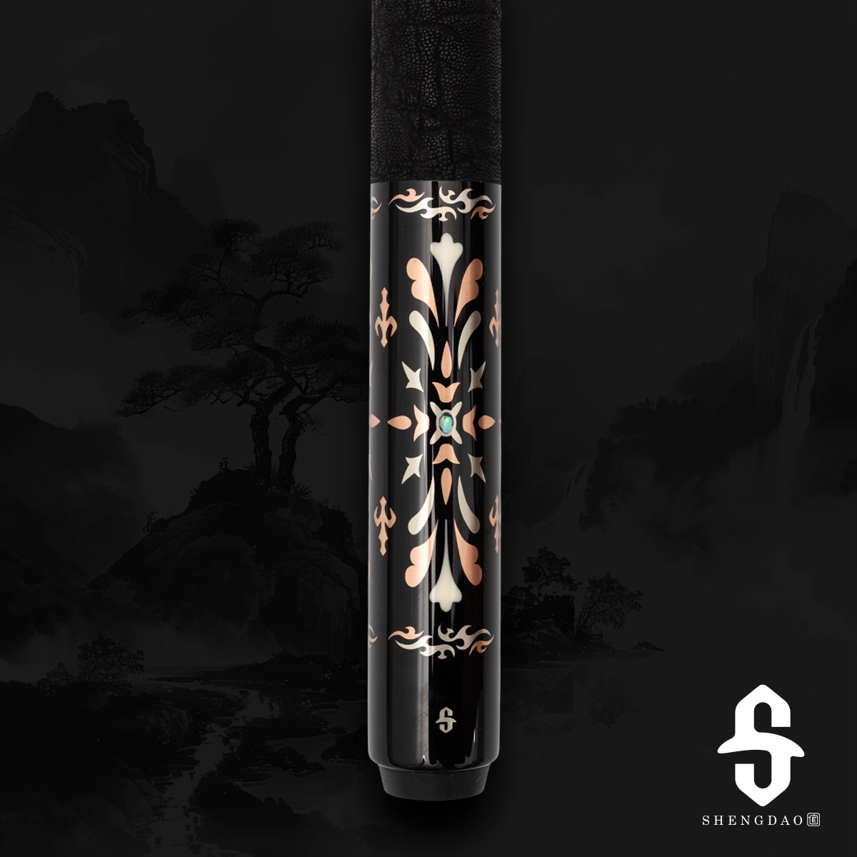 - Chuôi gỗ Mun Đen Ebony, khảm chỉa chất liệu Zuma ngà voi nhân tạo, đá Turquoise, bạc trắng, bào ngư đại dương