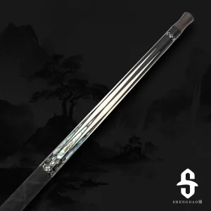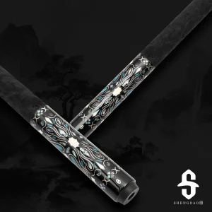 • Chuôi gỗ Mun Đen Ebony, khảm chỉa chất liệu Zuma ngà voi nhân tạo, đá Turquoise, bạc trắng, bào ngư đại dương