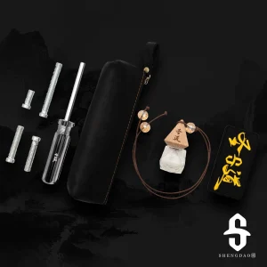 • Chuôi gỗ Mun Đen Ebony, khảm chỉa chất liệu zuma ngà voi nhân tạo, vàng hồng, bào ngư đại dương