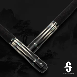 - Chuôi gỗ Mun Đen Ebony, khảm chỉa chất liệu zuma ngà voi nhân tạo, bào ngư đại dương